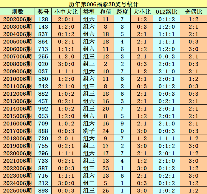 在积年同时开奖中,豹子开出1次,组三出现10次,组六开出13次,组六轮空2年,本年同时重防组六出现。