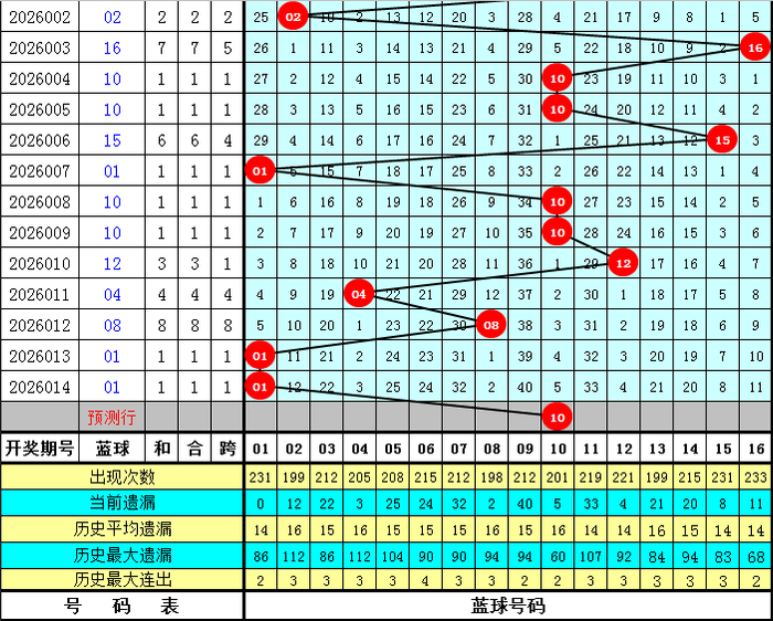 蓝球分析:最近9周星期二蓝球区分开出号码:06、16、14、16、04、16、15、10、08,本周星期二瞻望蓝球为偶数号码,怜惜蓝球号码10。